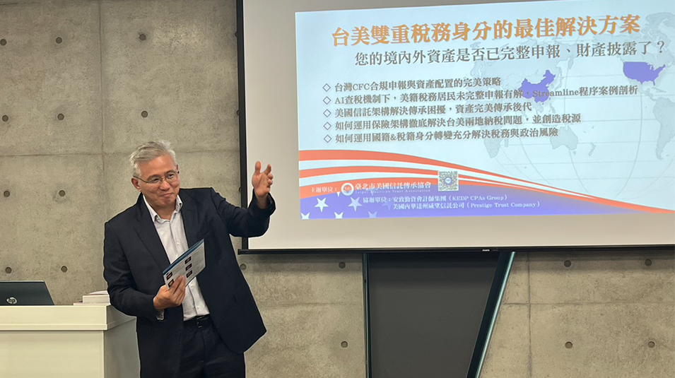 2026年4月21日,安致勤資會計師集團受邀出席由臺北市美國信託傳承協會於集思台中文心會議中心舉辦之「臺美雙重稅務身分的最佳解決方案」專題講座,與中部地區多位關注跨境資產與家族傳承議題之專業人士及高資產族群,共同探討國際稅務環境變遷下的因應策略。