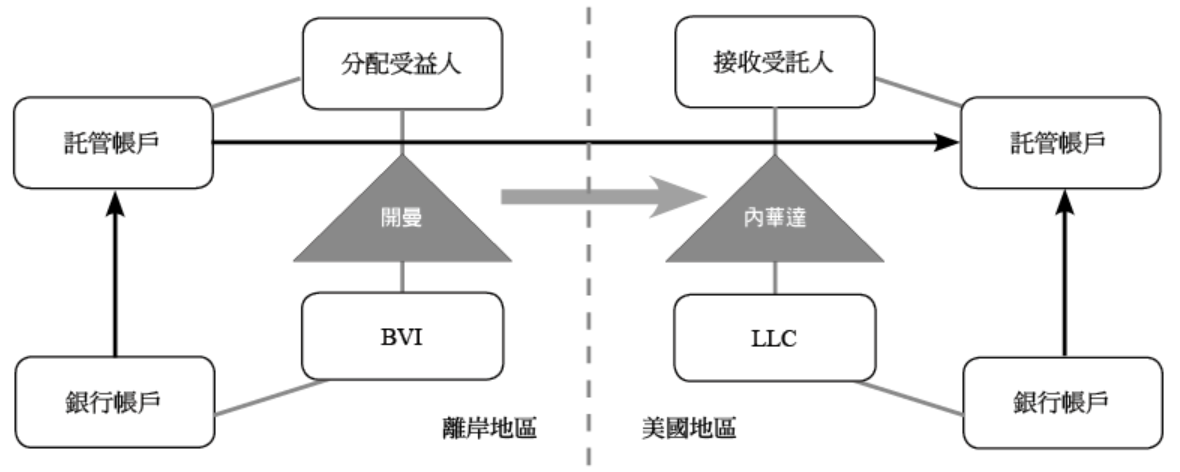 4.資產合法轉移:透過合法的境外架構及適當的資產操作,使境內資產國際化,最後透過轉讓文件,將第三地的境外法律實體移入美國信託,即完成資產轉移。